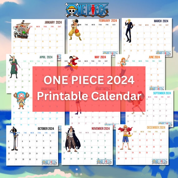 One Piece Printable Calendar 2024, Anime, Game, Game Room Decor